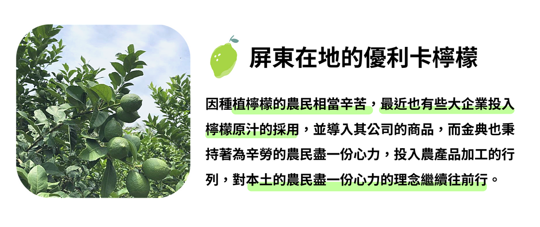 每一滴新鮮的原汁,來自豔陽下農夫對每一棵果樹汗水與愛的灌溉,原果與屏東在地小農契作,保障小農收穫,傳遞給您在地最真實的味道,100%無添加的原汁裡,有享檸檬與在地小農100%的用心⋯⋯